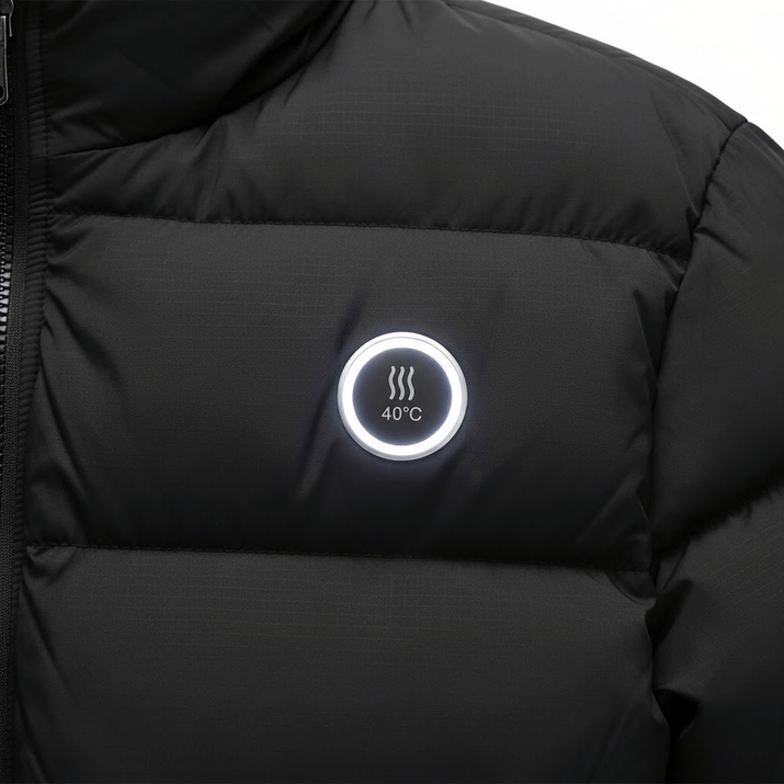Elegante beheizbare Winterjacke mit integriertem, wiederaufladbarem System.